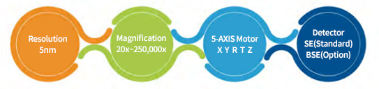 | Detector | Standard : Secondary Electron (SEI) Optional : Back scattered Electron (BSE) | |