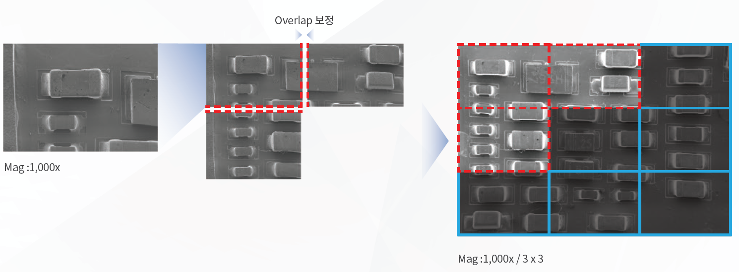 한 장의 SEM이미지로 담을 수 없는 샘플의 더 넓은 영역을 지정해보세요.